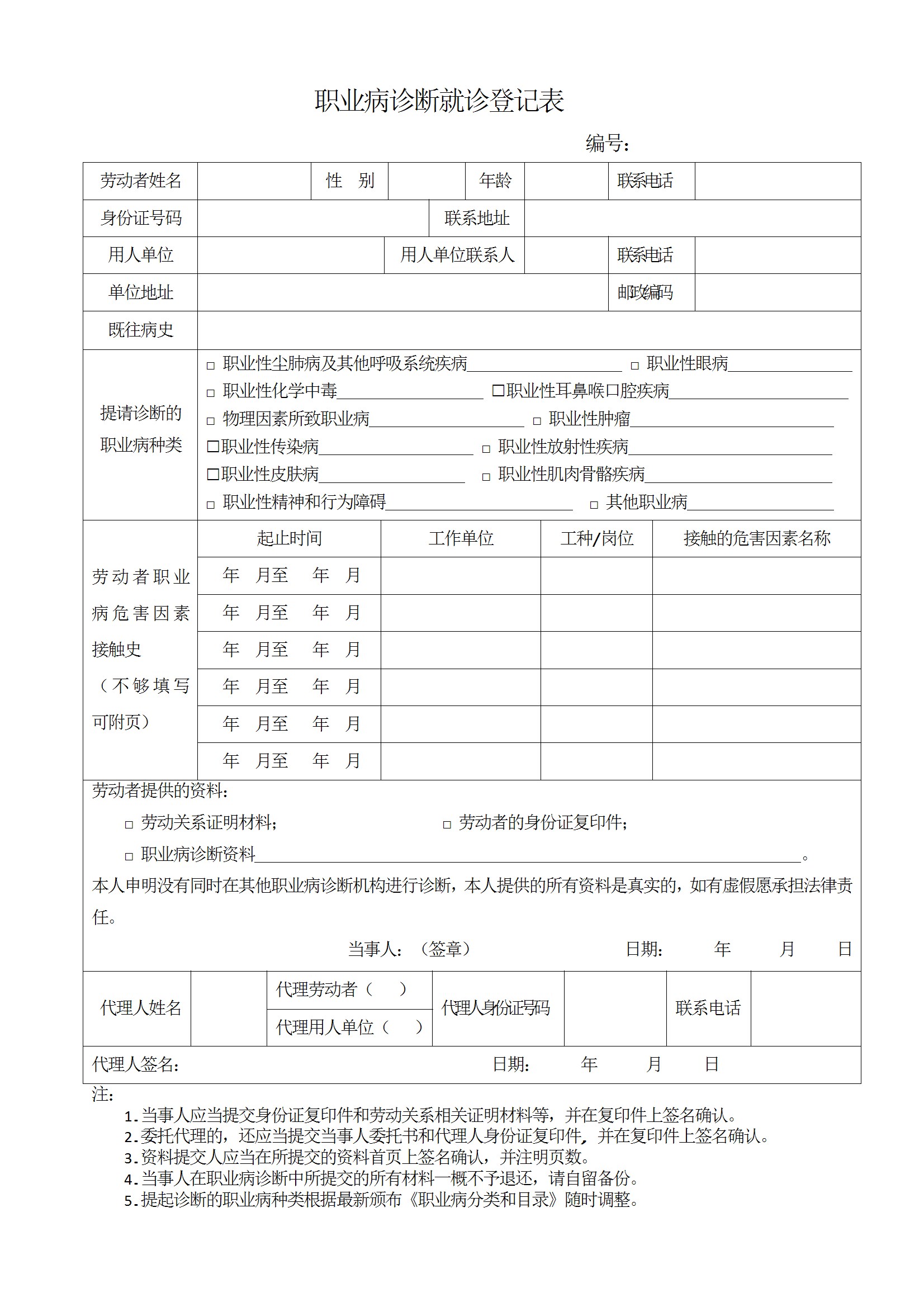 职业病诊断就诊登记表