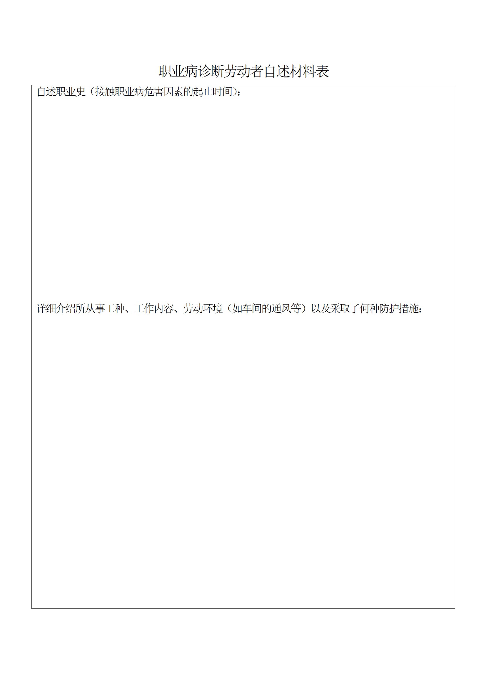 职业病诊断劳动者自述材料表