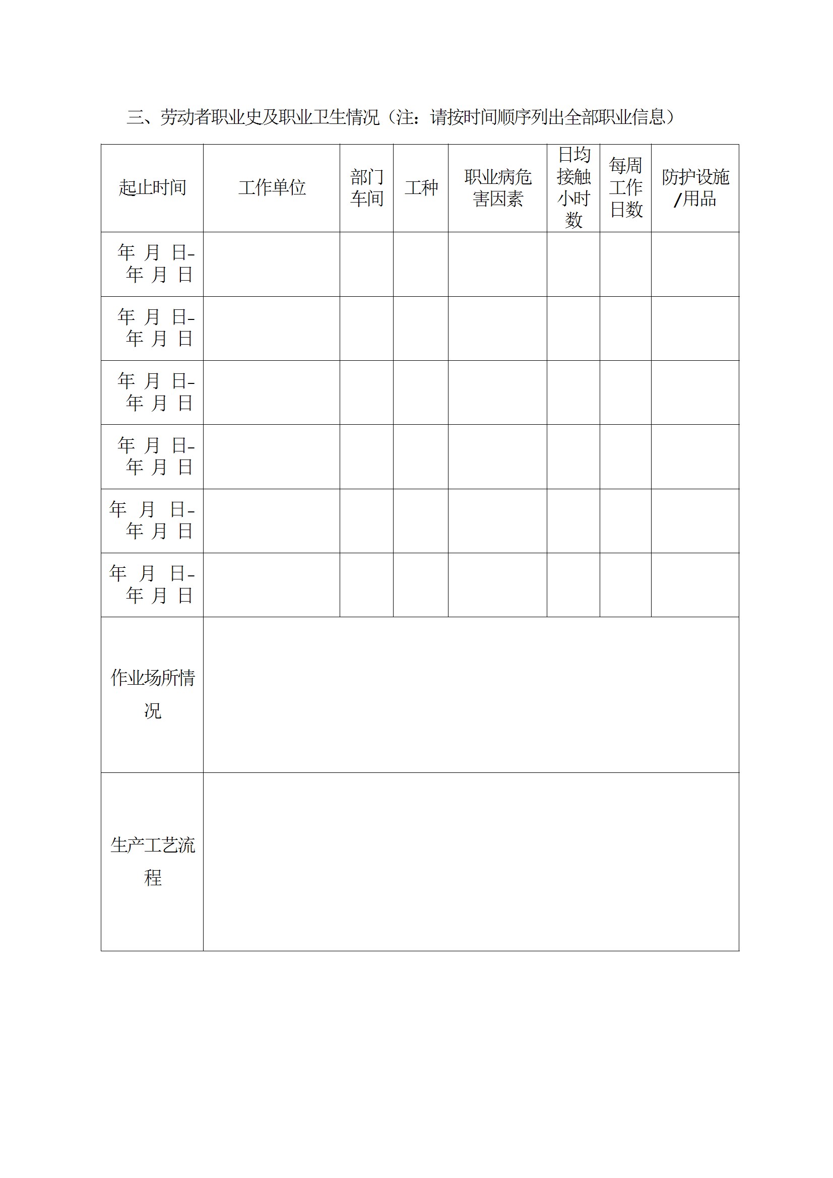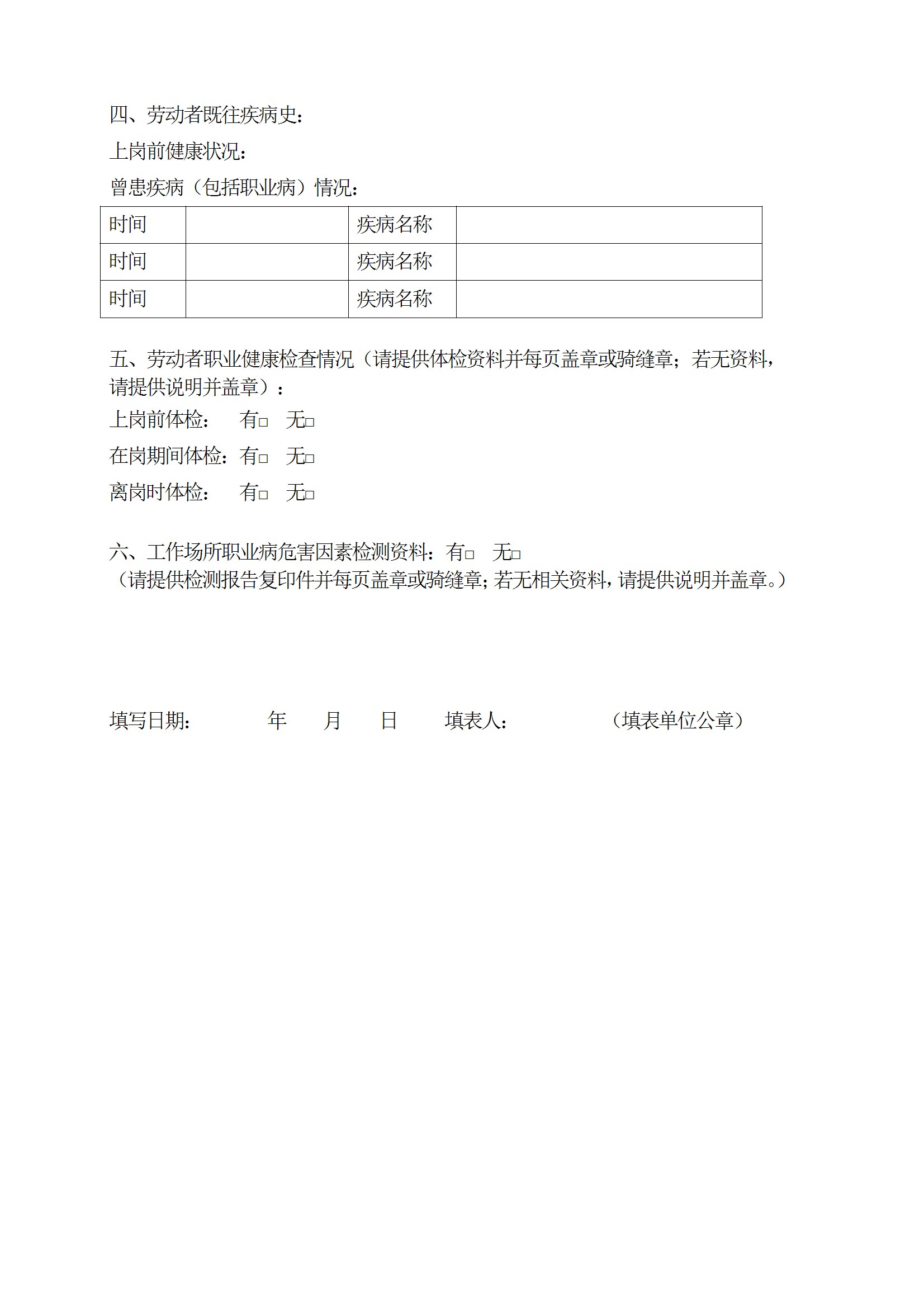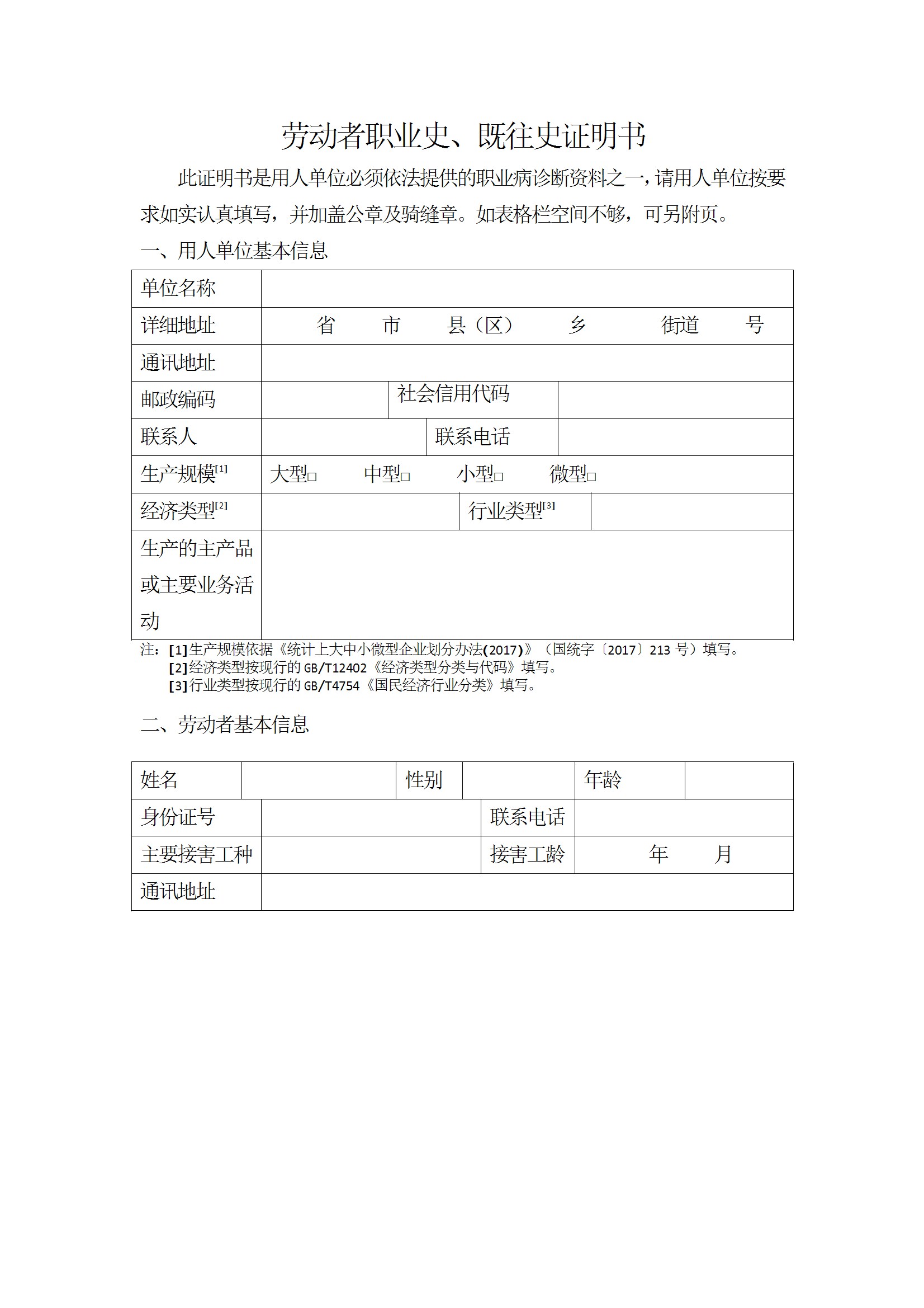 劳动者职业史、既往史证明书